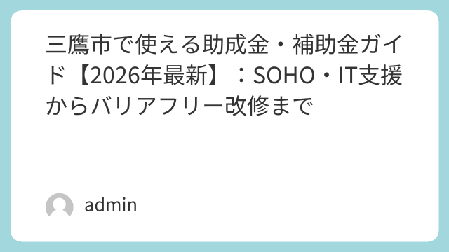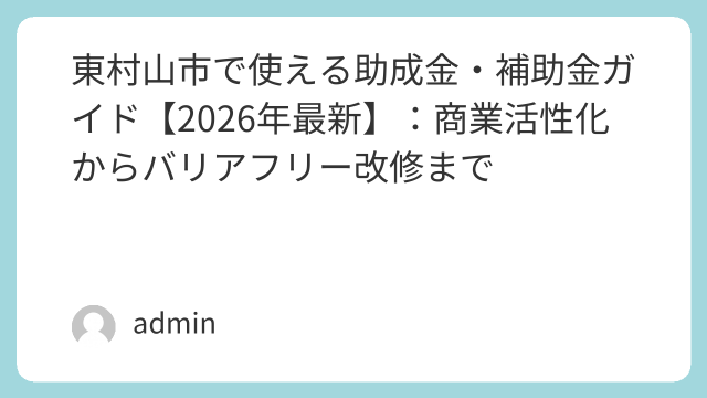 地域別助成金 東村山市で使える助成金・補助金ガイド【2026年最新】:商業活性化からバリアフリー改修まで