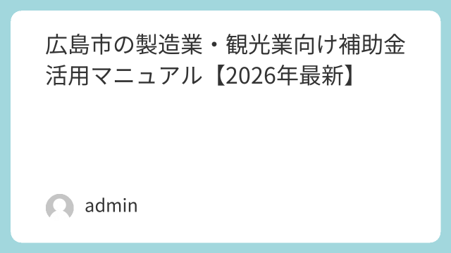 地域別助成金 広島市の製造業・観光業向け補助金活用マニュアル【2026年最新】 広島市で2026年に活用できる助成金情報を集約。製造業の設備投資支援から、観光業の新サービス開発、個人向けの住宅改修補助まで、広島市の独自制度を詳しく解説します。 2025.12.29 地域別助成金