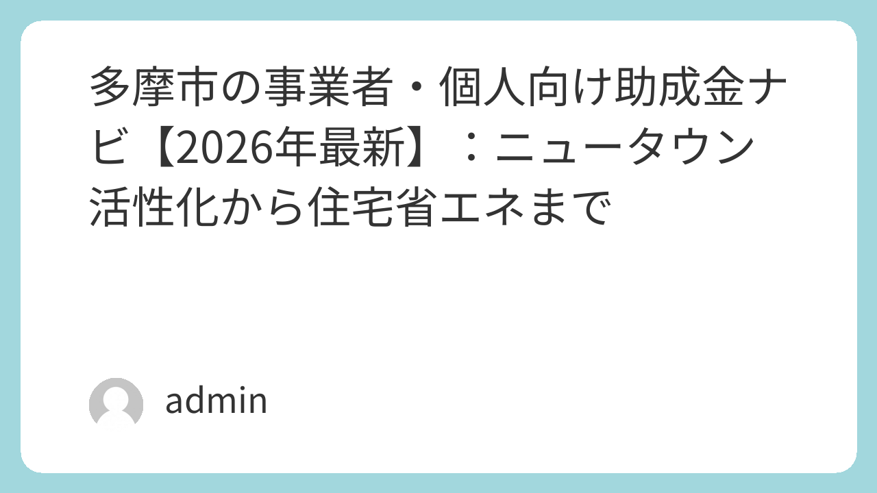 - 事業者向け:ニュータウン活性化・商業支援:多摩市独自の「ニュータウン活性化」や「商業振興」に対する助成金が充実しています。